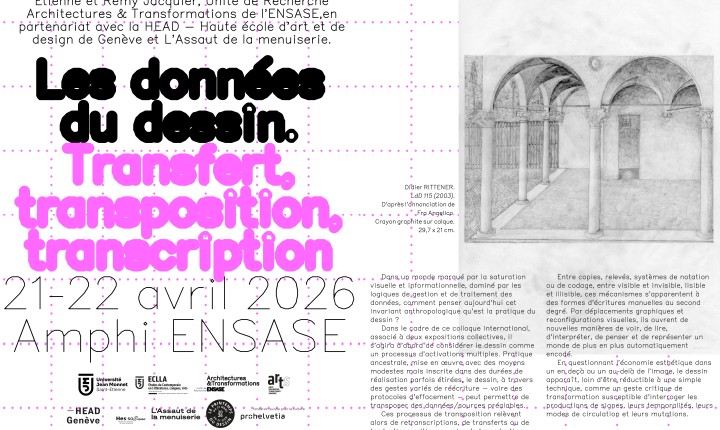 Colloque international co-organisé par Anne Favier, Laboratoire ECLLA de l’Université Jean Monnet Saint- Étienne et Rémy Jacquier, Unité de Recherche Architectures & Transformations de l’ENSASE,en partenariat avec la HEAD — Haute école d’art et de design de Genève et L’Assaut de la menuiserie.
